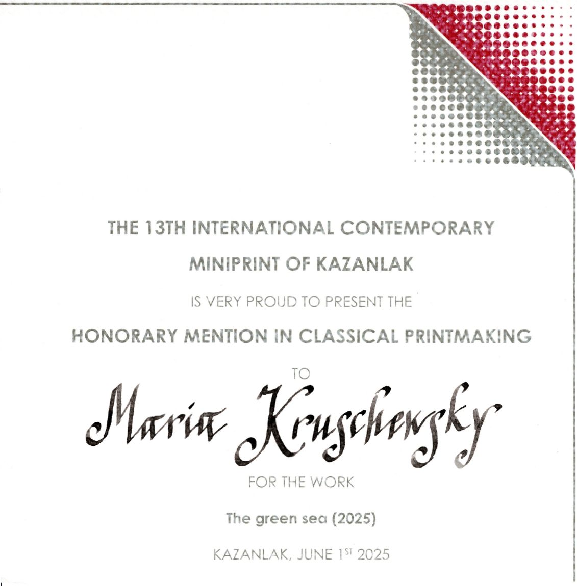Honorable Mention at Miniprirint Kazanlak 2025, Bulgaria.